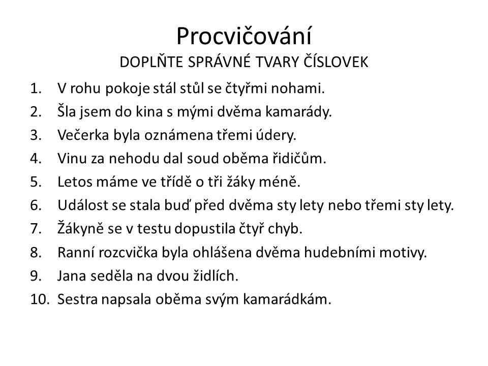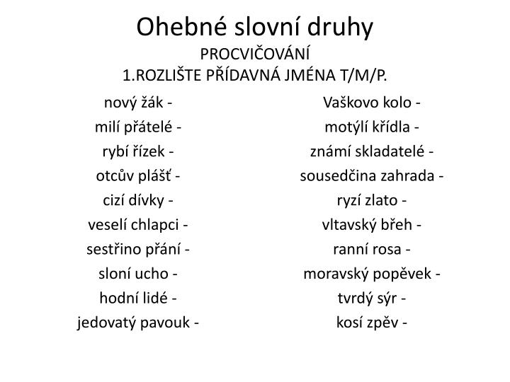 1. Urči ve větě slovní druhy