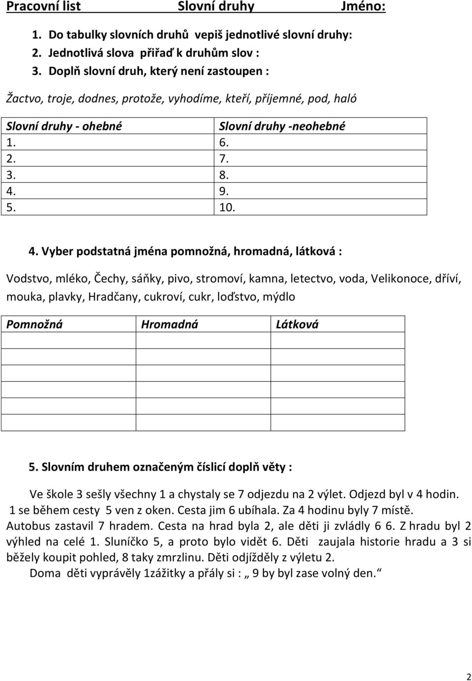 1. Urči ve větě slovní druhy
