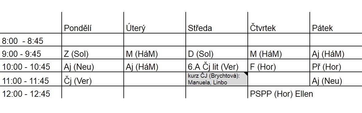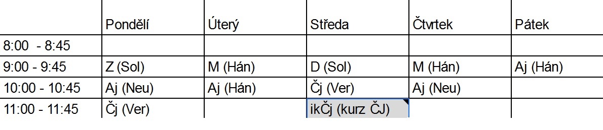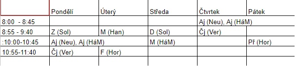 Rozvrh pro online výuku